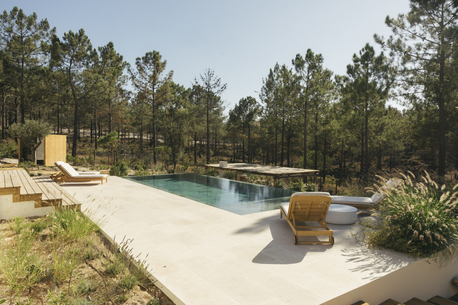Villa La Reserve is a stylish 6-bedroom villa in Carvalhal, Comporta, with modern rustic design, a private pool, and tranquil forest views, just minutes from the beach.